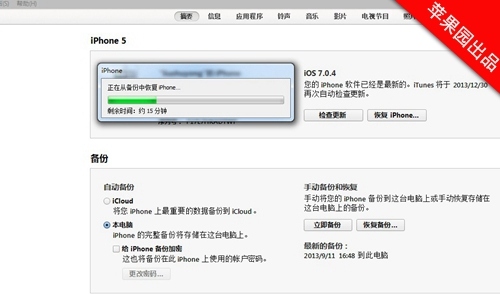 2、重啟itunes,就可以進行越獄後的恢復備份了,蘋果園小編親測可用。