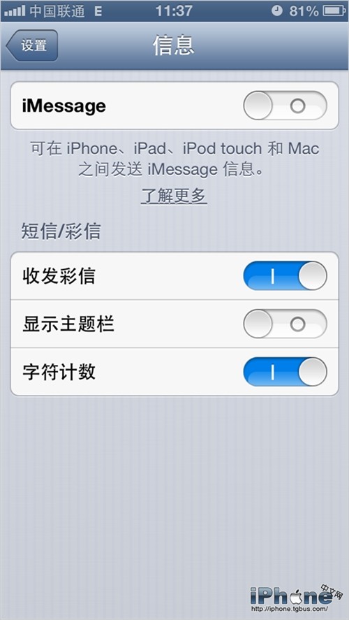 Ios教程網 >> IOS教程 >> 蘋果手機教程 >> iOS6,iOS7下iMessage簡明對比設置