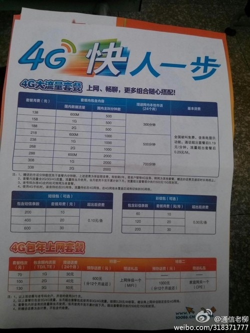 4G大流量套餐(圖片來自於微博)