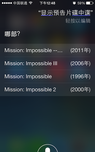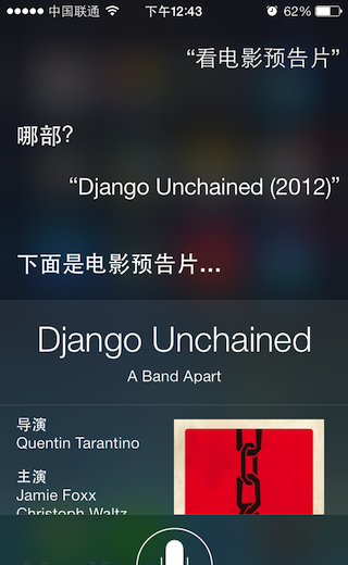 比較可惜的是,在中文中使用的時候,由於電影名稱在英漢互譯資料上的不完全,讓我們會感覺有些水土不服。你說漢語電影名稱吧,資料庫找不到,你就只能說英文的片名了,中英結合Siri絕大多數情況下聽不懂。可能這個功能也在不斷改進中吧,大家可以自己試試