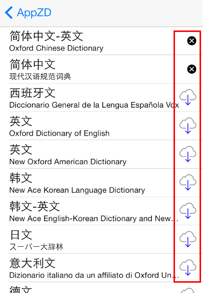 內置的詞典相比以前的版本內容豐富了太多,除了漢語詞典,還加入了西班牙語、韓、日、意大利文、德文、法文等語言,在搜索結果頁左下角點擊“管理”,即可選擇下載你需要的字典。