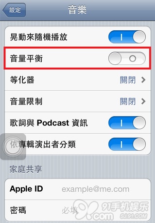 操作步驟:依次點擊【設置】→【音樂】,將【音量平衡】開啟即可。這樣就不用再被突如其來的大音量驚嚇到了。