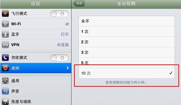 4.在信息的通知設置界面下面有一個重復提醒,點進去