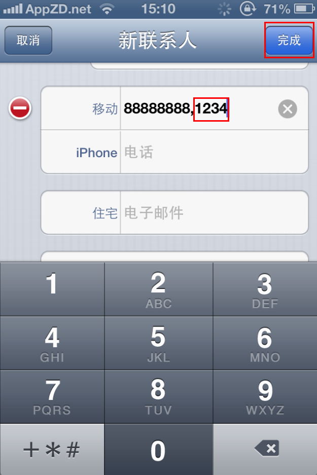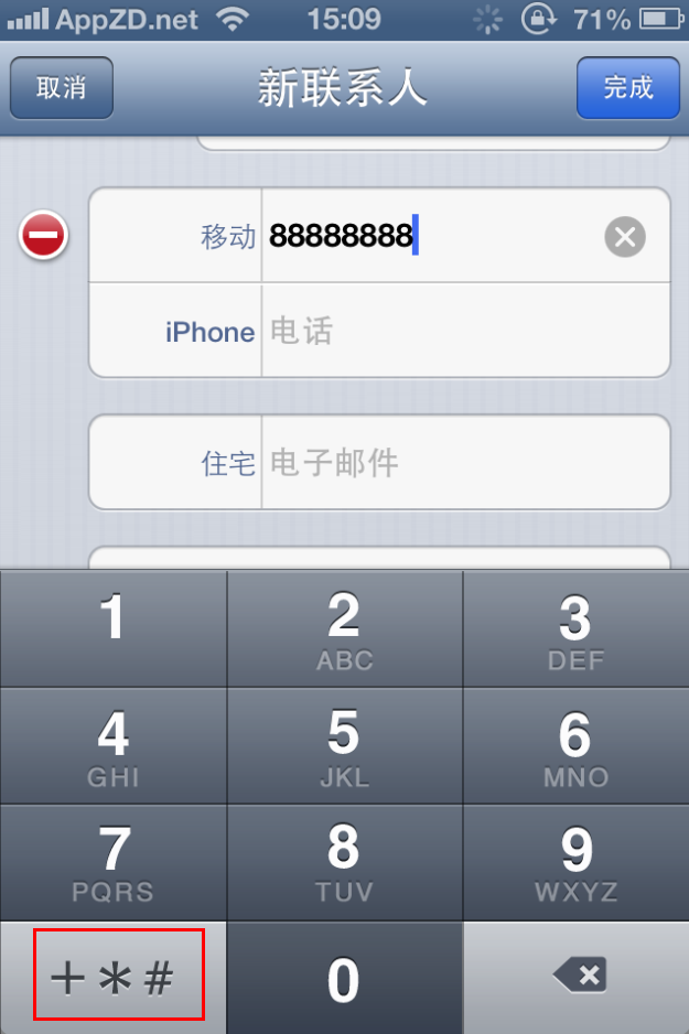 同理,也可以用這個方法直接存到通訊錄裡,方法基本同上,輸入電話號碼,然後選擇左下角“+*#”按鈕,
