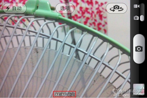 2.將iPhone放到需要虛化的背景前7~20厘米,長按屏幕然後放開,這時會看到AE/AF Lock字樣出現在屏幕下面(如果對7-10cm的距離沒概念的話,大約是半個手掌那麼長就行了)