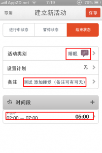 如果是強迫症患者,不想你的時間日志空白一塊,可以點擊右上角的小“+”號來“建立新活動”,有三種狀態可以選擇,最常用的是“結束狀態”,也可以設置成直接建立已“結束狀態”的活動