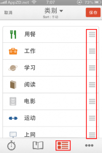 第二個“類別”選項下拉可以選擇排序狀態,一般選手動,如果想添加活動項目,比如說要加個寫代碼或者是做瑜伽的時間,點擊右上角的小加號可以進行添加,