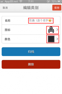 和前面介紹的添加類別時一樣,名稱、圖標、和顏色都可自定義,如果不需要這個項目刪除即可,