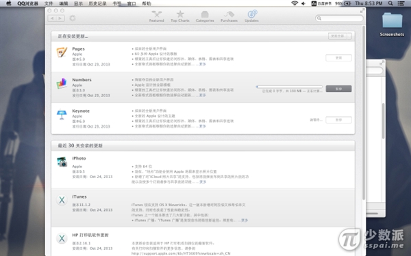 想要免費使用iWork套件,必須要有Mac OS X 10.9 Maverick的支持,目前蘋果App Store已提供免費下載,還沒有升級的果粉抓緊升級吧。升級包頗大,加之下載速度不夠給力,升級之路漫漫啊。其實最重要的准備工作還是要有一個Mac才行。