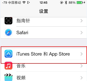 打開設置 -> iTunes Store和App Store