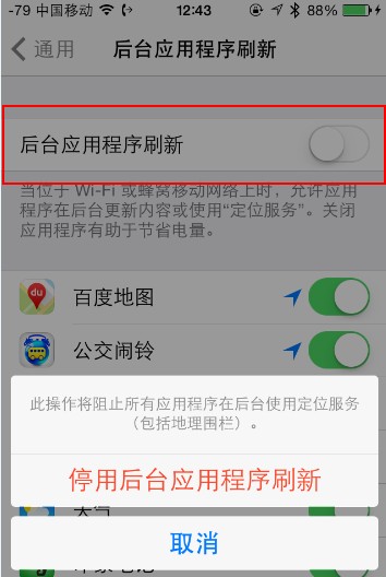 關閉後台應用程序刷新iOS7引入了一個新的功能,即真後台,不過這個功能基本是針對A6以上芯片來定制的,對於A4芯片,運行假後台都夠吃力了,就不要搞真後台了