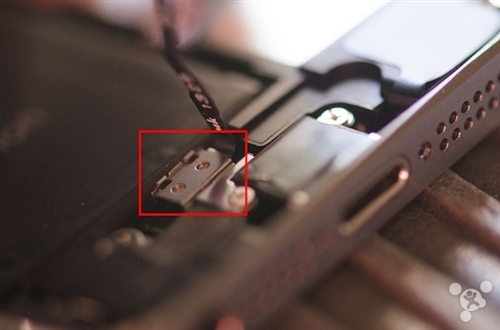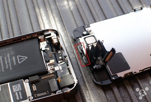 5,聽筒下面,輕輕用撬刀把屏幕前右邊的電線撬松,但別太用力,也不要傷害下面的電線,因為那是接近傳感器。