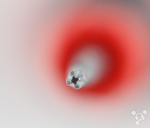 第一步,擰開梅花狀的螺絲釘,就在 Lightning 接口的兩邊。用的工具是一個專門的螺絲起子。