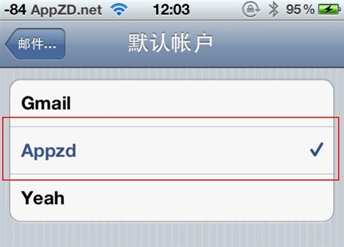3.點擊默認帳戶選擇默認郵箱即可