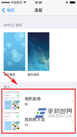 3)進入後,一般“好壁紙”下載的圖片都將保存在“相機膠卷”裡面,大家點擊進入後進行圖片預覽,在預覽界面右下方將有個“設置”按鈕。(如下圖所示)
