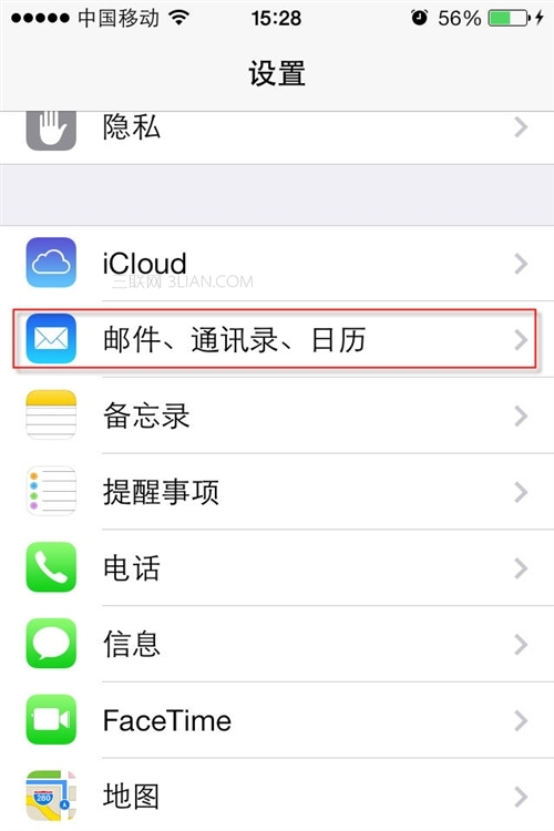 第二步:接著進入“郵件、通訊錄、日歷”中。