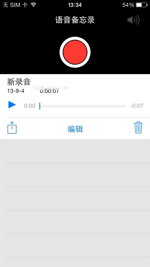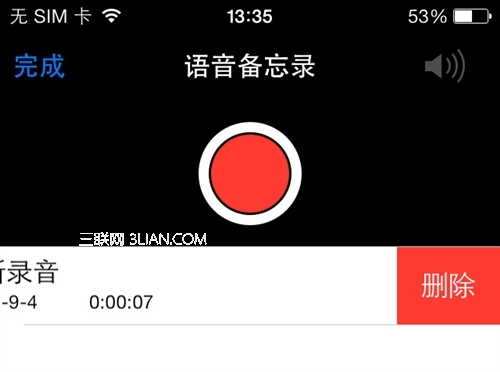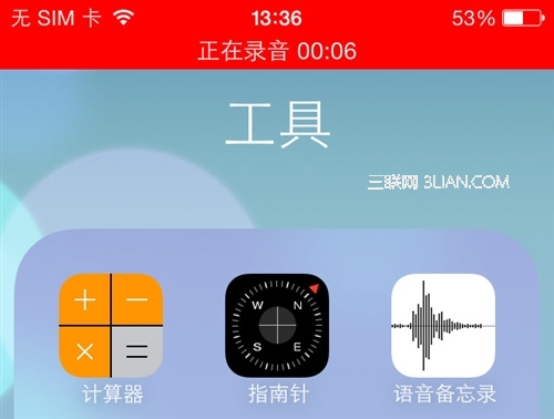 啟動錄音之後,可以按一下HOME鍵退回到主屏幕,此時會繼續錄音,點擊屏幕上方的紅色條幅,可以立即回到語音備忘錄程序: