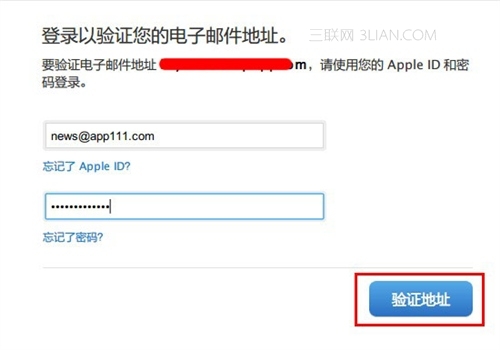 在新的頁面裡填寫上我們注冊的AppleID和密碼,點擊“驗證地址”
