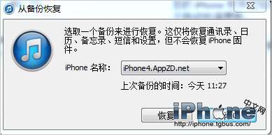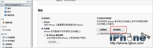 2.打開iTunes,選擇從備份恢復