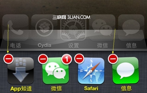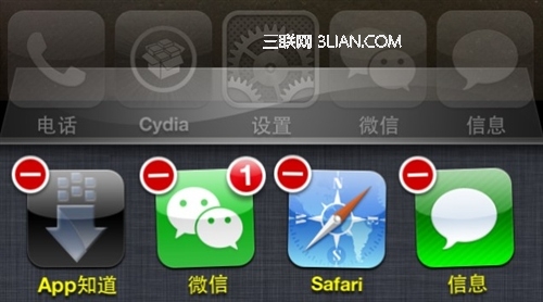 獄的同學最喜歡用的一個插件是Auxo,這個插件非常好用的一個功能是可以在多任務切換欄中按住應用圖標往下一滑就關閉應用,多個手指按住多個圖標往下一滑就可以同時關閉多個應用。相信沒越獄的人非常羨慕這個同時關閉多個應用的功能,咱們今天就來看一下未越獄如何也可以同時關閉多個應用: