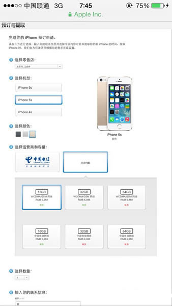 驗證通過之後對於您想要預訂的產品進行選擇,當然,我們今天的主角是iPhone5s!