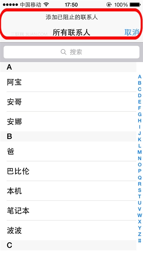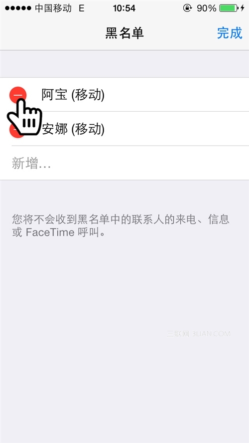 第2步:選擇新增,然後系統會自動彈出你的所有聯系人,選擇你要屏蔽的聯系人,你將不會收到黑名單中聯系人的來電,信息或者FaceTime呼叫。