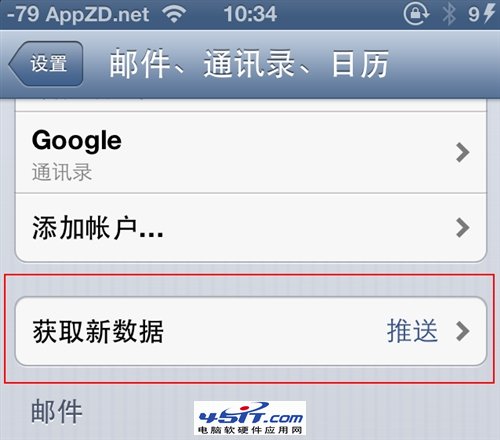 6.帳戶添加完成之後回到設置 -> 郵件、通訊錄、日歷,點擊獲取新數據