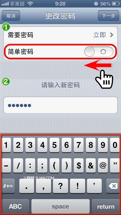 第5步:設置輸入密碼,簡單密碼模式下輸入四位數字即可;