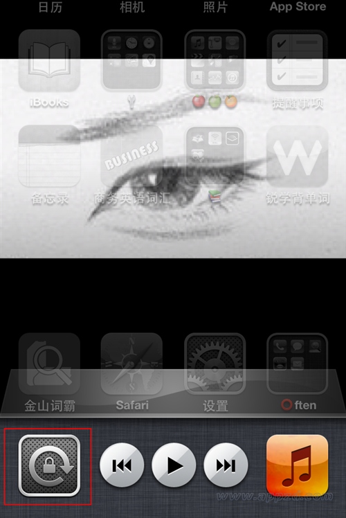2.如果沒有越獄,雙擊Home鍵,呼出多任務切換欄,移到最左邊,也有個屏幕鎖定的按鈕,點擊也可以。