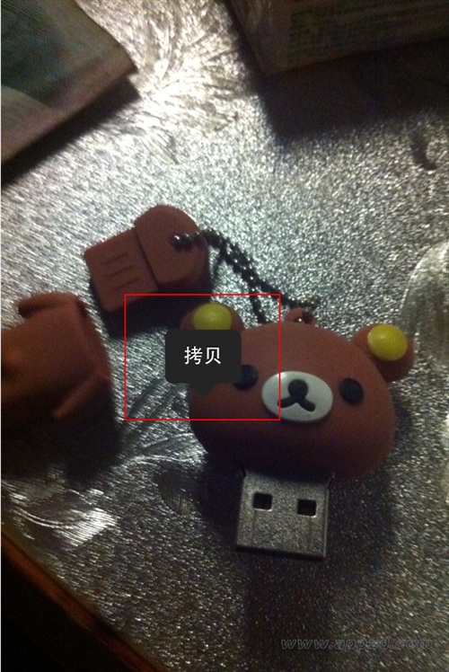 2.點擊屏幕任意位置,同時按住圖片進行旋轉手機進行查看,你會發現,手機旋轉,即使屏幕沒有鎖定,只要手不放開,圖片也不會旋轉,按時間一長,就會出現一個拷貝按鈕,甭理它就行: