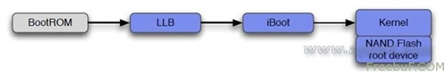 iPhone的啟動有兩種運行模式,正常模式模塊加載如下圖: