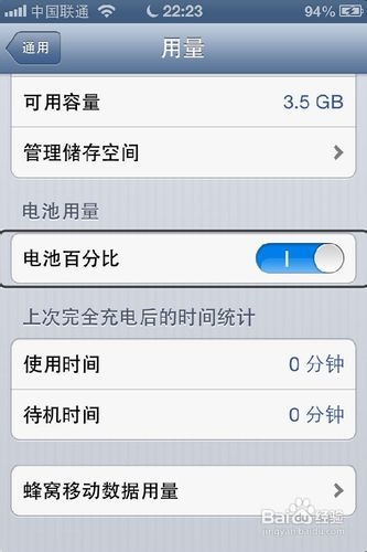 找到“電池百分比”選項,用手指點擊將其打開,這時打開狀態顯示為藍色。如下圖所示
