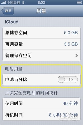 點擊“用量”,往下滑動,如圖,找到“電池百分比”