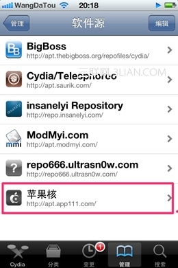 7.這時你就能看到剛才自己添加的蘋果核源被添加到你的軟件源列表中了。