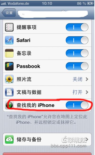 打開手機的iCloud功能,在iCloud設置頁面打開 查找我的iPhone這個選項,並且iCloud和這個選項一直保持開著!