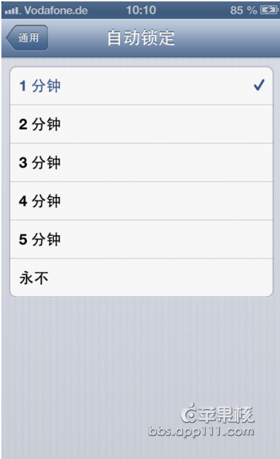 進入手機設置的通用頁面--自動鎖定 如圖: