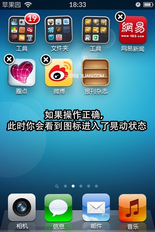 第5步:如果操作正確,此時你會看到圖標進入了晃動狀態: