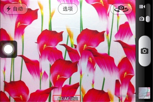 2.將iPhone放到需要虛化的背景前7~20厘米,長按屏幕然後放開,這時會看到AE/AF Lock字樣出現在屏幕下面(如果對7-10cm的距離沒概念的話,大約是半個手掌那麼長就行了)