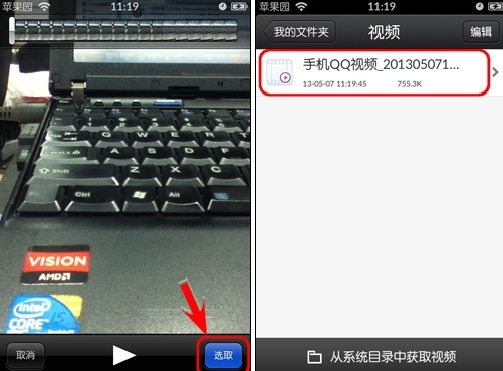 5.默認的視頻文件夾是空的,需要點擊屏幕下方的“從系統目錄獲取視頻”,然後會從iphone5上向這裡加載視頻內容,這個是本地操作,不花費流量。