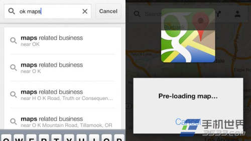 操作十分簡單,將IOS版Google Maps縮小的你想要的街區、城市,如果你想保存的區域過大,軟件會提示你縮小一些地區范圍再重新保存,然後在搜索欄中輸入“ok maps”,摁下搜索,你就會看見屏幕上出現一個Google Maps的圖標,顯示正在預加載地圖。如果你想保存的區域真的很大,你可以將地圖劃分成幾個區域,然後重復之前的操作。但現在這項功能還只能手動選擇區域,暫時不支持直接選擇城市然後保存地圖。不過對於那些身處異鄉沒有數據流量,或者想在飛機上時查看地圖信息的用戶來說,已經很有幫助了。