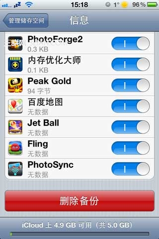 6、如果需要清空iCloud雲備份,點擊最下方的"刪除備份"即可。