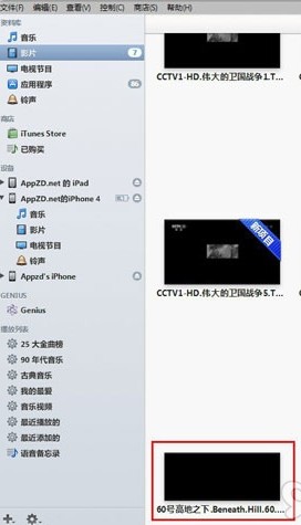 3.添加之後,在資料庫中就會出現剛剛選擇的電影,如果沒有出現,則說明該電影格式不被iPhone支持,可以通過一些格式轉換工具轉換成iPhone支持的格式: