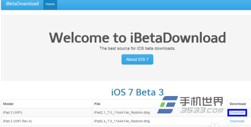 2)這裡以iPad2為例,點擊固件名稱右邊的“Download”鏈接。(如下圖所示)