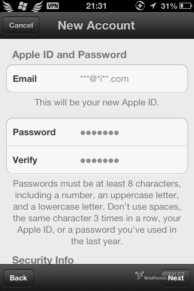 今天apple的驗證機制已經不同於以前了,沒有美國的ip和正確的地址,是無法注冊成功的。所以首先要解決ip問題,其實很簡單,幾個字,掛v p n.地址百度一搜一大把.不解決都會報錯。如果依然不可以,你可以把情況提交給我.不信的人可以看我以前的帖子,我幫別人申請過的.