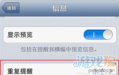 使用iPhone有個比較有意思的事情,收到一條信息的時候會被提醒兩次,一次是剛收到的時候,一次是過幾分鐘,而對於收垃圾短信遠遠多於有用短信的人來說,也許經常會在做事情的時候被垃圾短信打斷思路,如果信息對你來說從來都不是緊要事情的話,可以打開設置 -> 通知 -> 信息,將其中的重復提醒關閉,這樣就只會在收到的時候會被提醒一次了: