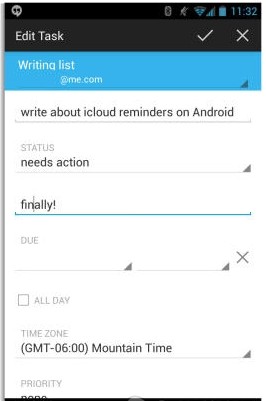 幾天前, 開發者更新了軟件,加入了Reminder同步的功能。要同步iCloud Reminder到安卓設備,你需要安裝兩款軟件。SmoothSync for Cloud Calendar和Tasks。