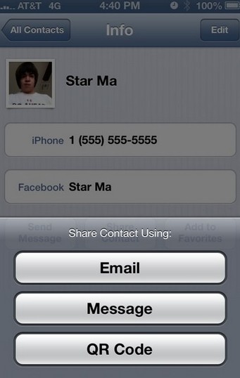 此外,NativeQR 還支持聯系人快速分享功能,類似微信的生成二維碼功能。有興趣的同學可以研究研究噢~