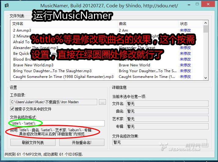 %title%等是修改歌曲名的效果,這個按需修改就行了。