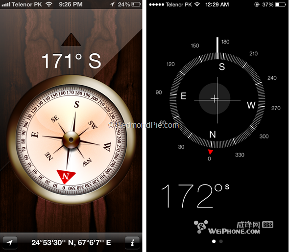 左邊 iOS 6 右邊 iOS 7,我們整理了多張對比圖,讓大家以最直觀的角度來看待兩代系統之間的視覺差異。無論是桌面、撥號界面、還是地圖等等,我們都能看到幾乎完全不同的視覺效果。不知道各位看完之後,是否會對 iOS 7 產生新的理解?如果你沒有接觸過 iOS 設備,又會喜歡哪一個系統呢?