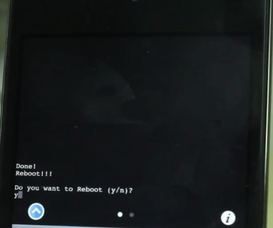 最後鍵入“y” (不包括雙引號),表示選擇重啟,再按設備虛擬鍵盤上的“return”。